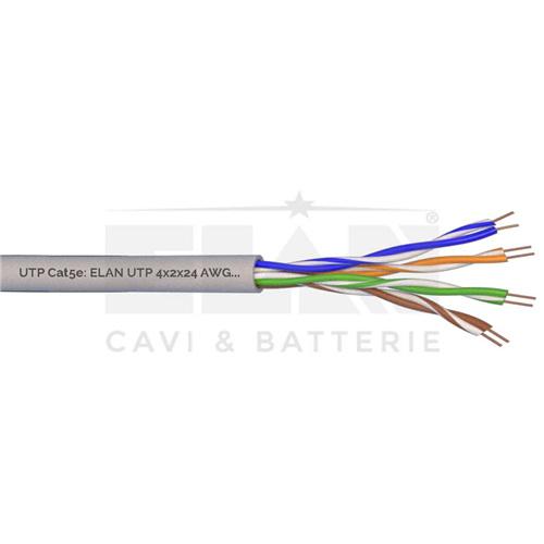 CODICE: 098243MARCA: ElanCavo UTP CAT5e 4x2x24AWG.Fornito in bobina da 305m.Prezzo al metro